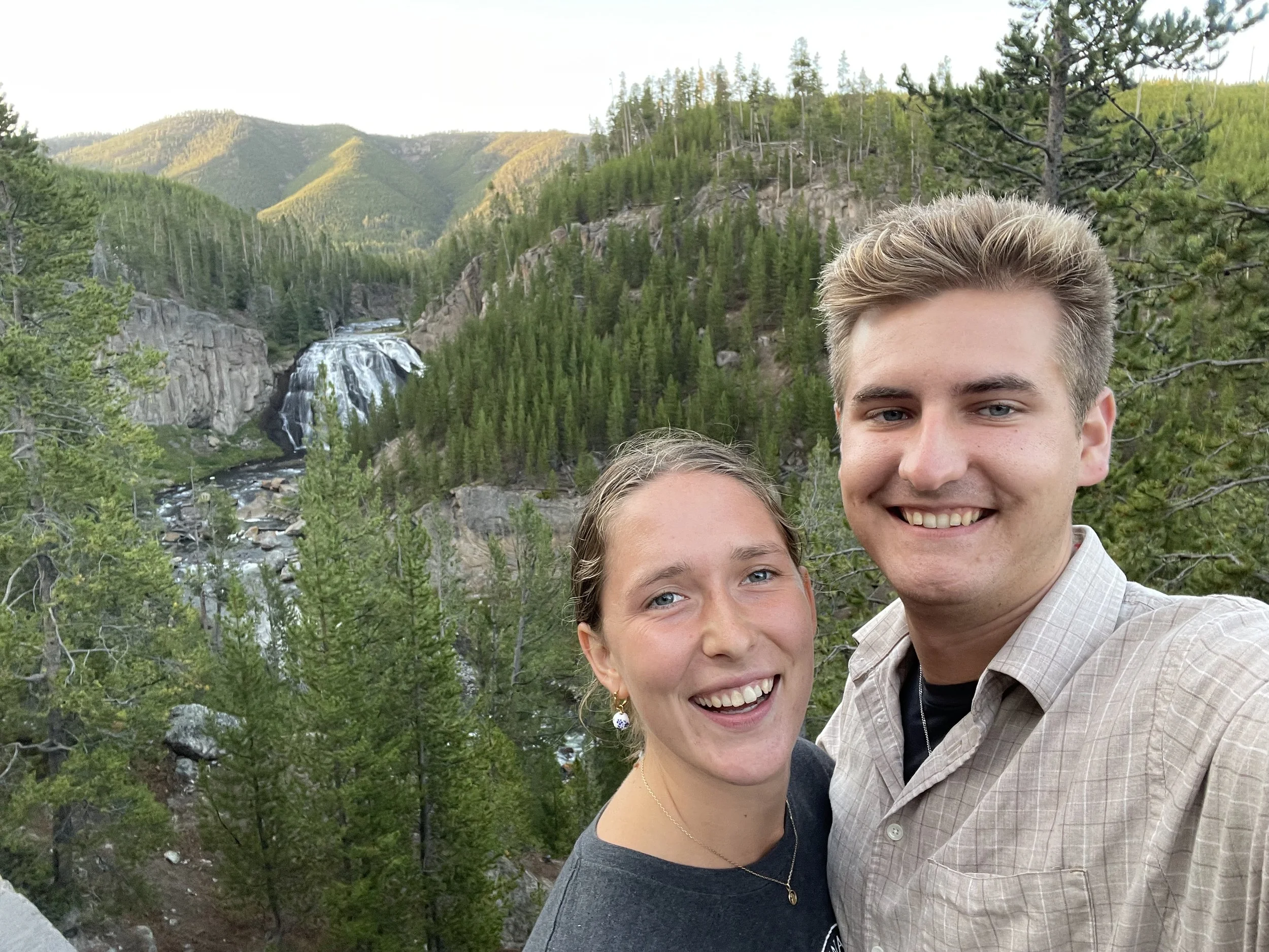Before we left the stream, a small South Korean lady named Kim stopped us and asked if we knew where she was, and also to say congratulations. We thanked her, and then we explained to her which road would take her out of the park, and she explained to us that she knew that, but her navigation didn’t work and she didn’t know how to find her way without it. We explained the route again (which was, to be clear, ‘go that way and turn right at the first right; can’t miss it’) and she again explained to us, very patiently, that she already knew, she just couldn’t find her way without navigation. Then she started giving us some life advice, which was actually pretty good, for the most part. She told us that in order to be happy in our marriage, we should remember to talk together, to understand each other, and to always sleep together. Also, when informed that our marriage was to be next June, she told us that we had better ‘do it’ twice, just to be sure. We asked her what she thought of Yellowstone, and she said that it was nice, but we should go to South Korea, which she thought was the most beautiful. Then she informed us that her husband was very healthy man, very hearty, but when he turn forty-five, he got heart attack, he fall down dead. Just like that. He gone. We thanked her for the advice, wished her luck, and continued on our way. We will always remember the kind words of our friend Kim, especially right before we turn forty-five.